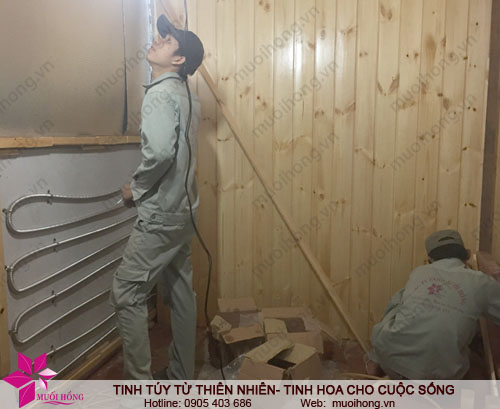Công trình phòng xông hơi Hàn Quốc tại Chăm Spa Đà Nẵng đang trong quá trình thi công. Cả hệ thống gốm 3 phòng xông: phòng xông đá muối ủ, phòng xông đá muối thảo dược, phòng xông tuyết.