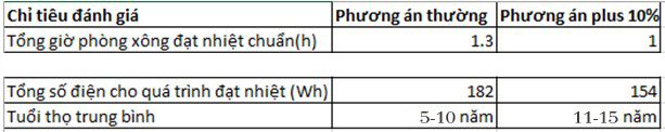 Bảng so sánh giữa mức dây bình thường và mức dây đã plus 10% cho thấy hiệu quả vượt trội