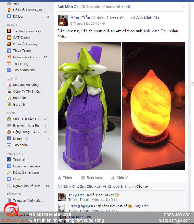 Đèn đá muối làm quà sinh nhật. Hình ảnh chúng tôi đã có được trên một trang facebook của một khách hàng.