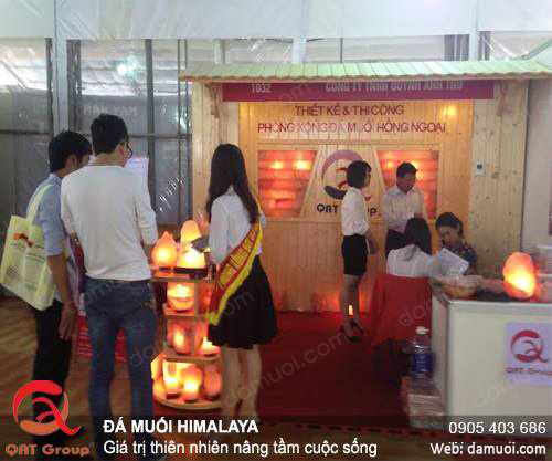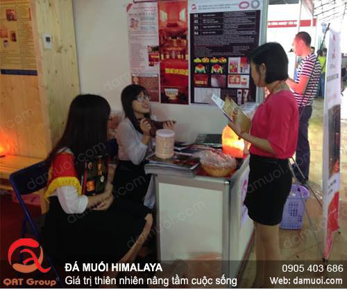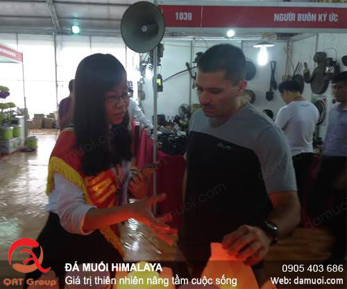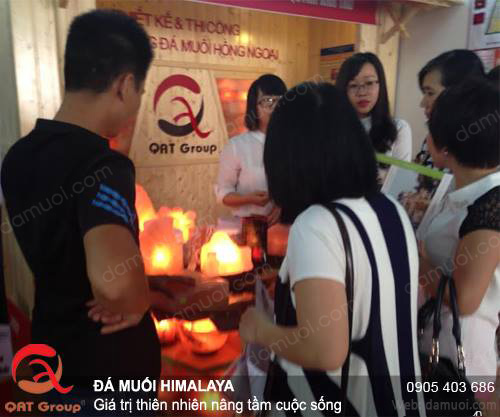 Hình ảnh sôi động của buổi triễn lãm Vietbuild tại Hà Nội, khách hàng quan tâm đến sản phẩm muối hồng khá nhiều.