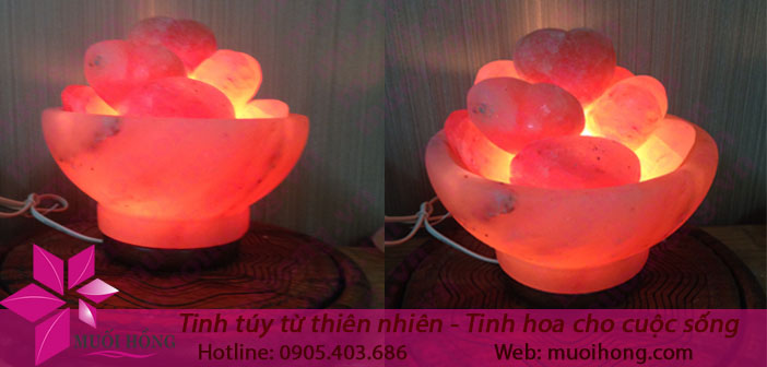 - Hướng dẫn sử dụng: Dùng bóng đèn sợi đốt thắp sáng đặt giữa tô đá để làm nóng các viên đá muối massage đã đặt ở xung quanh.