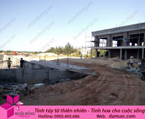 Những ngày đầu chuyển mùa thu, nắng vàng nhẹ, không gắt như những ngày hè oi bức. Thời tiết khá ủng hộ anh em Muối hồng QAT tại Quảng Bình. Công trình phòng xông đá muối Gold Cast Hotel & Spa đang được tiến hành thi công.